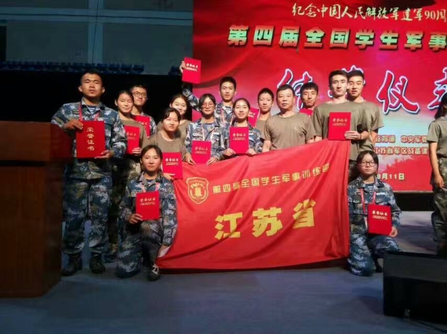 8月11日,由教育部和中央军委国防动员部主办的第四届全国学生军事训练营在南京结营,来自全国31个省、自治区、直辖市和新疆生产建设兵团的248名大、中学生顺利度过了14天的训练营生活。威尼斯官网16级土木四班邹媛同学(05A16403)和数学学院孙师伟同学经选拔推荐,参加了由四名男生和四名女生组成的江苏代表队。经过激烈比拼,最终江苏代表队获得五个单项第一、团体总分第一的好成绩。