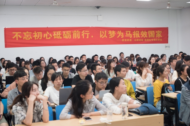 为了深入开展"教育思想大讨论”,强化家国情怀和社会责任对于人才培养的重要性,2018年5月11日下午6:30,威尼斯官网职言职语系列活动之“选调生专场分享会”在九龙湖校区本科教学楼J2-103顺利举办。