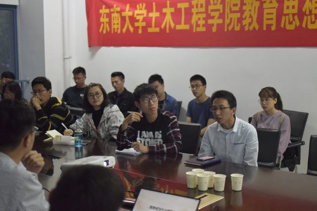 在自由讨论环节,同学们结合自己和身边同学在校期间的学习和生活经历,积极主动的献计献策,对学院在学生培养方面提出了一些建议。有同学提到要成为一个有一技之长的人,希望学院能够安排专门的课程进行相关软件教学,比如时下十分风靡的BIM软件。有同学表示对未来的职业生涯还比较迷茫,希望学院结合行业前景和专业特色多多开设一些职业生涯规划课程。有同学针对目前学硕与专硕的培养模式,提出希望能在基本的课程学习任务完成基础上,加强专硕在工程实践方面的培养和能力锻造。还有同学建议学院多多邀请大型施工企业、设计院及地产企业校友,开展不同职业选择的经验分享会。