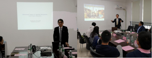 仪式后,SeungDeog Kim教授和Ken’ichi Kawaguchi教授分别为在场师生做了题为“Advanced Topics in Spatial Structures : Chaos, Impact, Deployable”和“Multistability and Metastability in Structures”的精彩学术报告。
