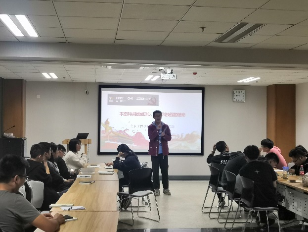 会议以《习近平关于“不忘初心、牢记使命”的论述摘编》作为思考启发,结合纪录片“《不忘初心继续前进》第三集:攻坚克难”中创新与研发的重要性,就作为一名博士研究生对“不忘科研报国初心,牢记科技强国使命”这一主题进行深入思考及研讨。会议上支部全体同志积极分小组学习、讨论,研讨氛围十分浓烈,其中部分同志结合自己所学、所思上台进行发言交流。会议过程中,全体同志纷纷表示,一定要在学习、研究中勇于担当,用实际行动践行科学工作者的初心和使命。