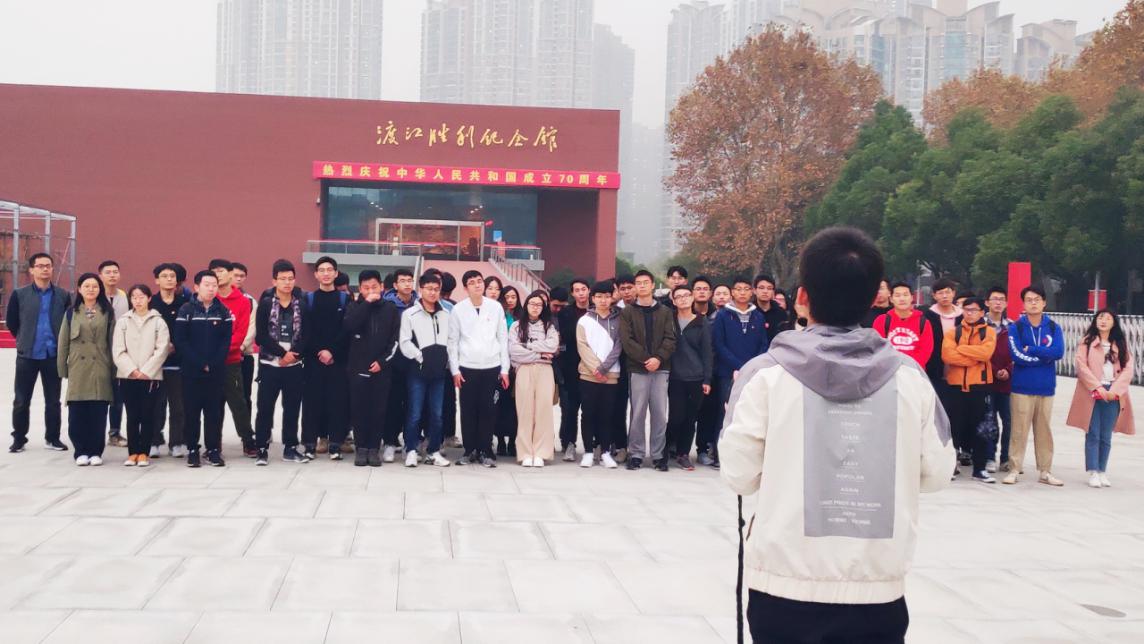 在活动的开始,2019级硕士第一党支部书记陶健雄在渡江胜利广场为参与活动的58名党员和积极分子带来了题为“牢记先烈精神”的党课。他为同学们细致讲解了渡江战役的战斗历程,号召各位同学在参观中积极学习先烈精神,不忘初心,牢记使命。
