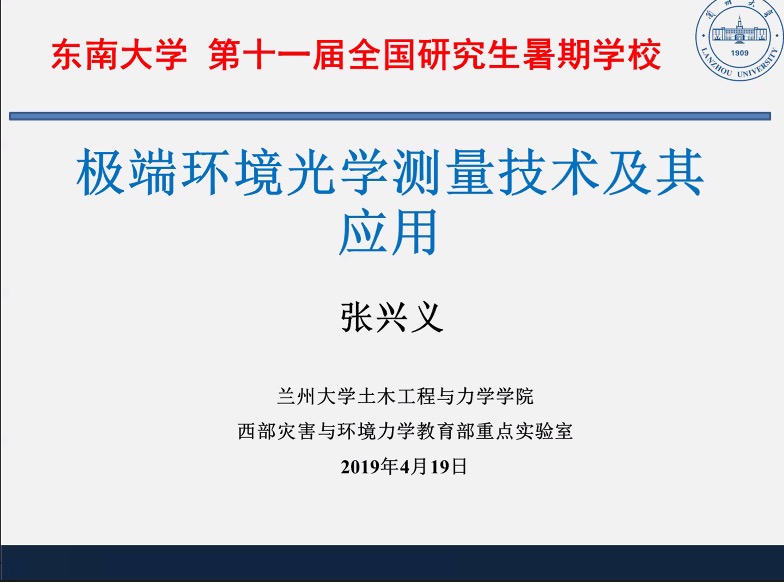 力学分会场还邀请了兰州大学张兴义教授带来了“极端环境光测力学及其在超导材料特性研究中的应用”的学术报告。报告包括高温超导薄膜热、磁应力研究,高温超导薄膜磁通崩塌研究和高温超导带材内部损失演化可视化测量三个部分。张教授阐述了面向超导薄膜在极端环境下的热应力和电磁应力的测量方法与理论建模。其次,针对高温超导材料在磁场扰动下会发生磁通崩塌的问题,提出一种激光诱发磁通崩塌的实验模式,并向学员详细的展示了团队在该领域取得的成果。报告后学员们积极提出问题并与老师展开了热烈讨论。