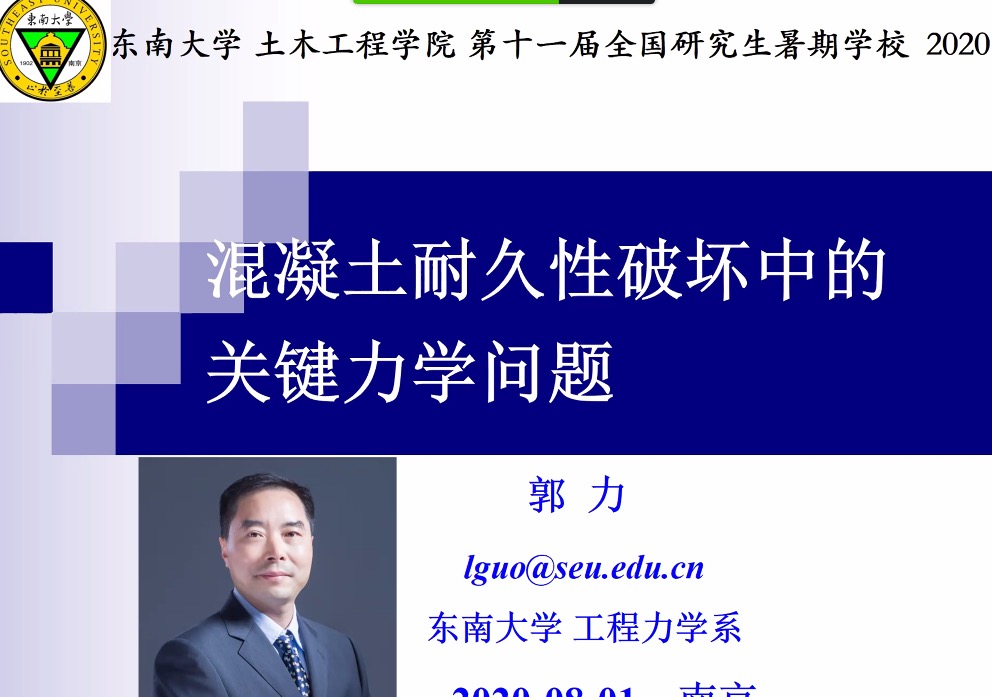 1066vip威尼斯工程力学系郭力教授为同学们作了题为“混凝土耐久性破坏中的关键力学问题”的学术报告。郭教授首先介绍了混凝土在服役过程中有害离子的侵蚀将导致混凝土损伤至破坏,发生耐久性失效问题。然后,引出有害离子在混凝土中的输运过程与混凝土中细宏观裂纹的动态扩展是混凝土耐久性研究中的关键力学问题。最后,针对该问题,提出了面向混凝土耐久性研究的计算力学方法,包括近场动力学理论以及过程耦合的有限元求解技术;而对混凝土内部损伤破坏的测试问题,简要提及基于声发射技术和深度学习的方法。郭教授在讲座中与学员积极互动,现场气氛活跃,大家收获颇丰。
