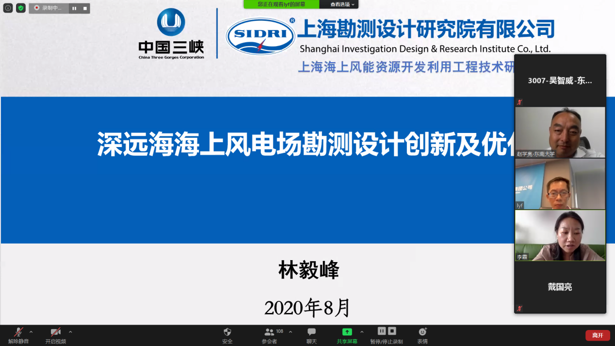 上海勘测设计研究院有限公司林毅峰教授级高工为学员们讲述了“深远海海上风电场设计创新及优化”讲座。林毅峰教授级高工首先向学员们介绍了发展海上风电的意义,目前海上风电发展现状及趋势,提出了当前海上风电发展所面临的问题;随后讲解了深远海风电场环境条件勘测分析所要做的任务及解决方法;最后林毅峰教授级高工指出了海上风电设计创新及优化的途径,向大家展示了其团队的海上风电机组基础优化设计系统。