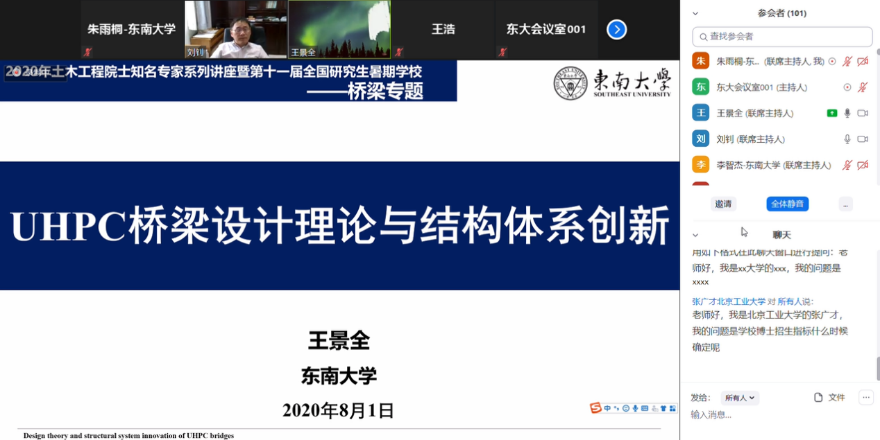 8月1日下午,暑期学校结构与防灾、桥梁、岩土、力学与工程管理五个分会场在学科情况介绍与师生交流后,继续邀请了各领域的知名专家为来自于全国各地的本科生和研究生带来精彩的线上报告。