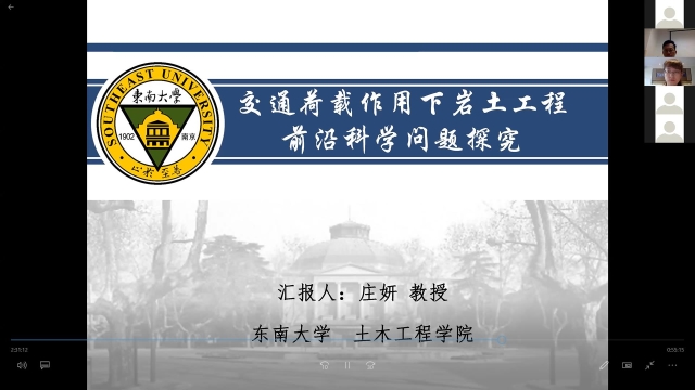 最后一场报告由1066vip威尼斯庄妍教授主讲,报告主题为“交通荷载作用下岩土工程前沿科学问题探究”。