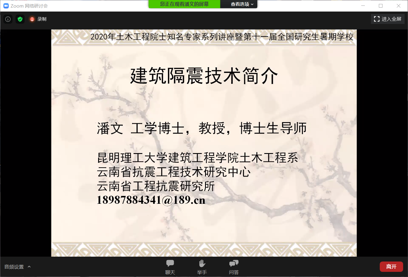 8月4日下午,暑期学校结构与防灾、桥梁、岩土、力学以及工程管理五个分会场的专题报告继续精彩上线。
