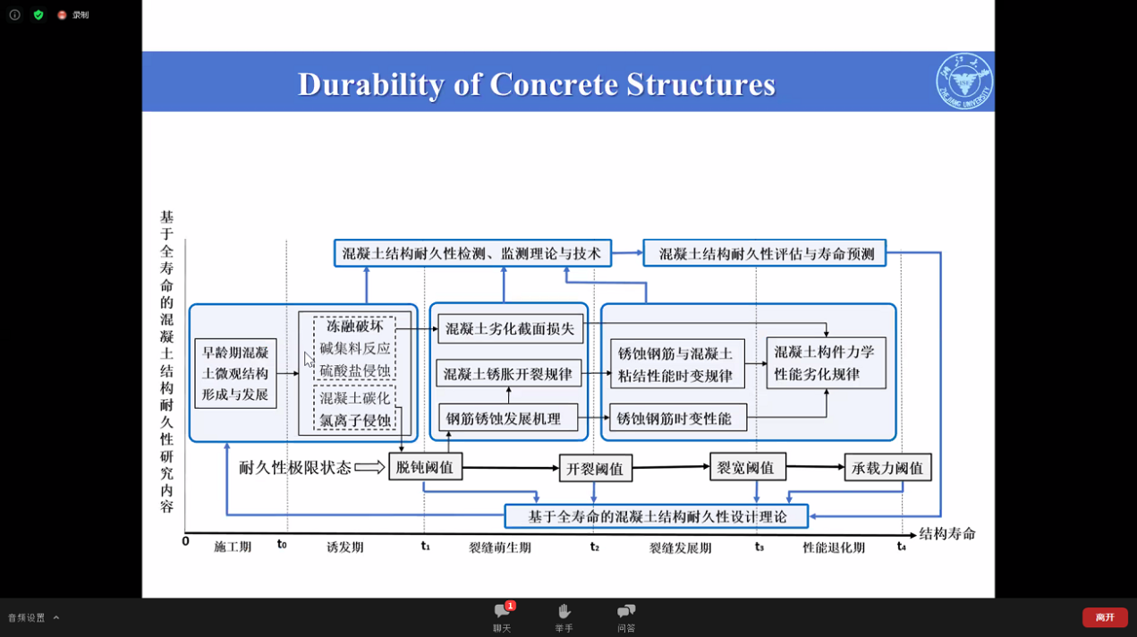 在结构与防灾专题分会场,浙江大学赵羽习教授带来了题为“混凝土结构耐久性”的报告。混凝土结构作为目前使用最广泛的结构形式,它的耐久性一直是引人关注的重要课题。