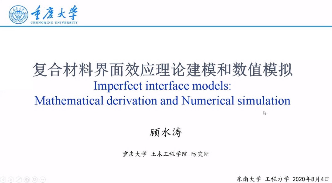 随后,重庆大学顾水涛教授带来了题为“复合材料界面效应理论建模和数值模拟”的讲座。顾老师首先阐述了对力学学科的认识和理解,并和同学们分享了学习力学的方法。报告聚焦复合材料界面,作为重要的微观结构,复合材料界面的力学特性复合材料宏观力学特性有着至关重要的影响。顾老师重点讲解了界面特性理论建模方法,基于细观力学的均匀化方法,以及基于扩展有限元XFEM的界面效应数值模拟方法。