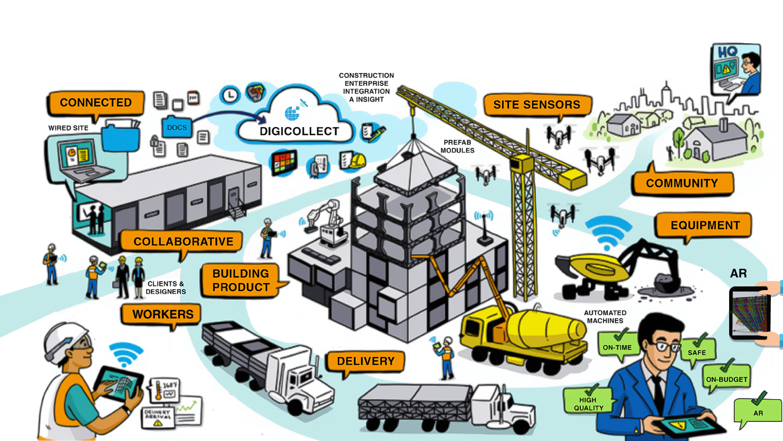 数字设计与智能建造不是一个简单的狭义概念,它涵盖了建筑物全生命期的三大阶段:建设、交付和运营。在建筑物建设过程中,运用智能化与信息化技术来完成规划、设计、施工,需要在各个环节采用建筑信息模型(BIM)、互联网、物联网、大数据、云计算、移动通信、人工智能、机器人、区块链等新技术,与建筑工业化技术和先进制造管理方法协同进行集成与创新,以此降低资源消耗与成本,提高工程质量与效率。作为建筑业产品的建筑物在交付时,需要具备高度的“智慧”,让其能够融入现代社会,实现绿色与健康功能,体现其质量与价值。