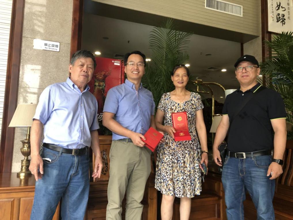 6月24日上午,威尼斯官网李德智副院长一行将纪念章交至樊发兴老师侄女手中