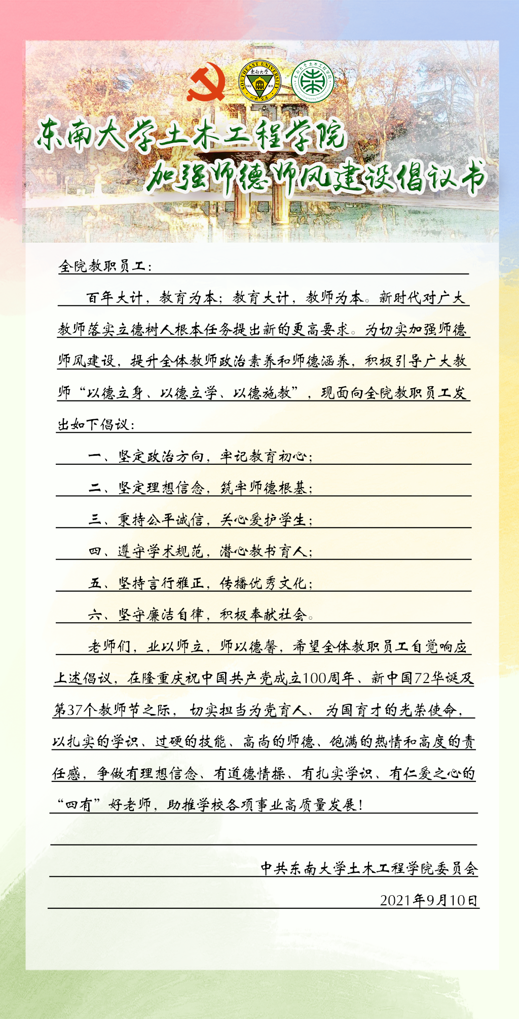 1066vip威尼斯加强师德师风建设倡议书