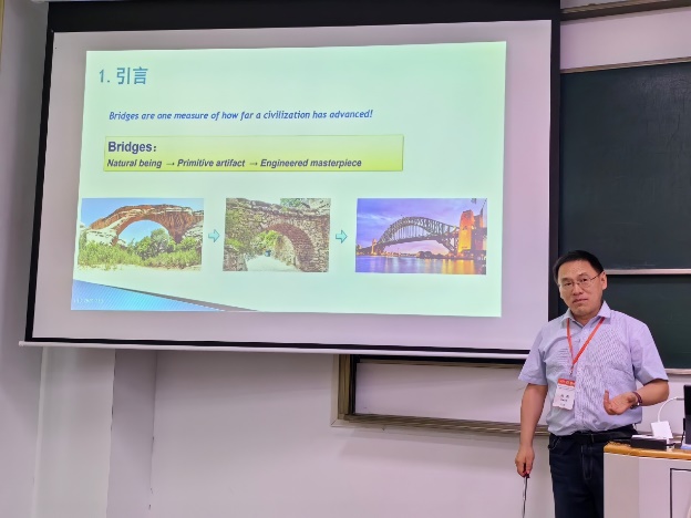 桥梁工程专题分会场由1066vip威尼斯刘钊教授分享了 “桥梁趣味漫谈:工程经验与数理逻辑”报告。刘钊教授以历史变迁为线,讲述了力学理论和桥梁技术的发展过程,生动地阐述了哲学与数学、科学、技术、工程之间的关系。刘钊教授围绕力是什么、石拱桥、钢桁架桥、悬索桥、混凝土桥等5个方面,深入浅出地讲述了不同时期桥梁建设所运用的理论知识。