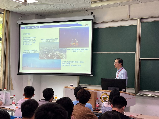 岩土工程专题分会场特别邀请上海勘测设计研究院有限公司总工程师、首席专业师、上海海上风能资源开发利用工程技术研究中心主任陆忠民教授级高级工程师就我国海上风电发展与工程技术问题向同学们分享他在海洋工程中的最新实践成果。