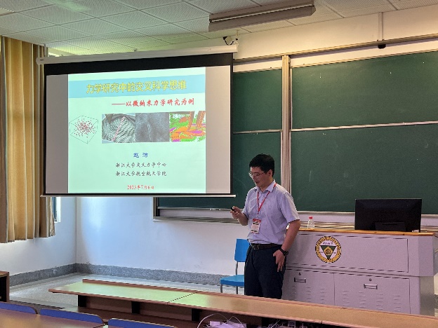 教育部青年长江学者、浙江省杰出青年基金获得者、全国宝钢优秀教师、浙江大学教授赵沛为力学专题的同学们带来了主题为“力学研究中的交叉科学思维—以微纳米力学研究为例”的主题报告。
