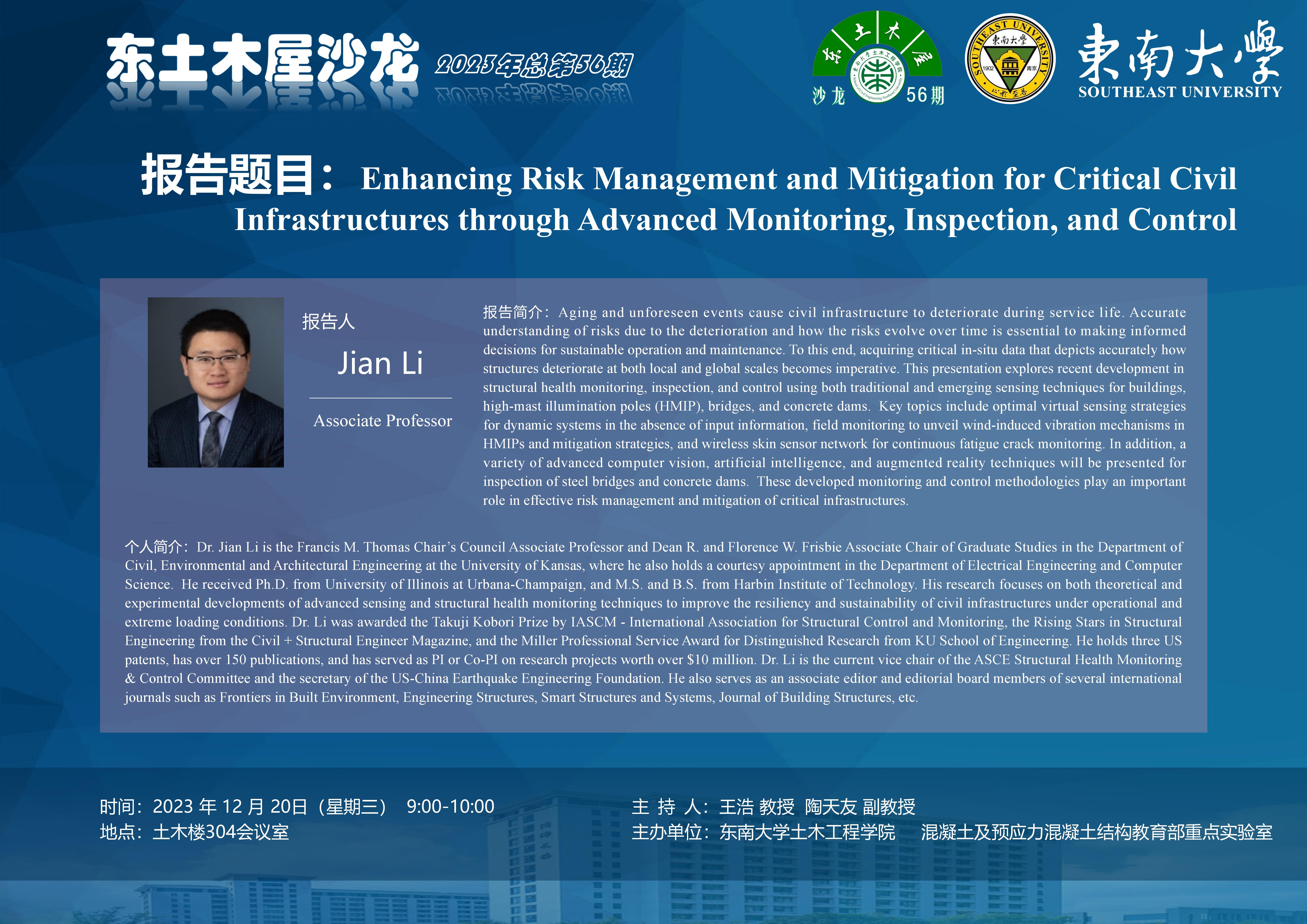 东土木屋沙龙第56期 | Enhancing Risk Management and Mitigation for Critical CivilInfrastruetures through Advanced Monitoring, Inspection, and Control