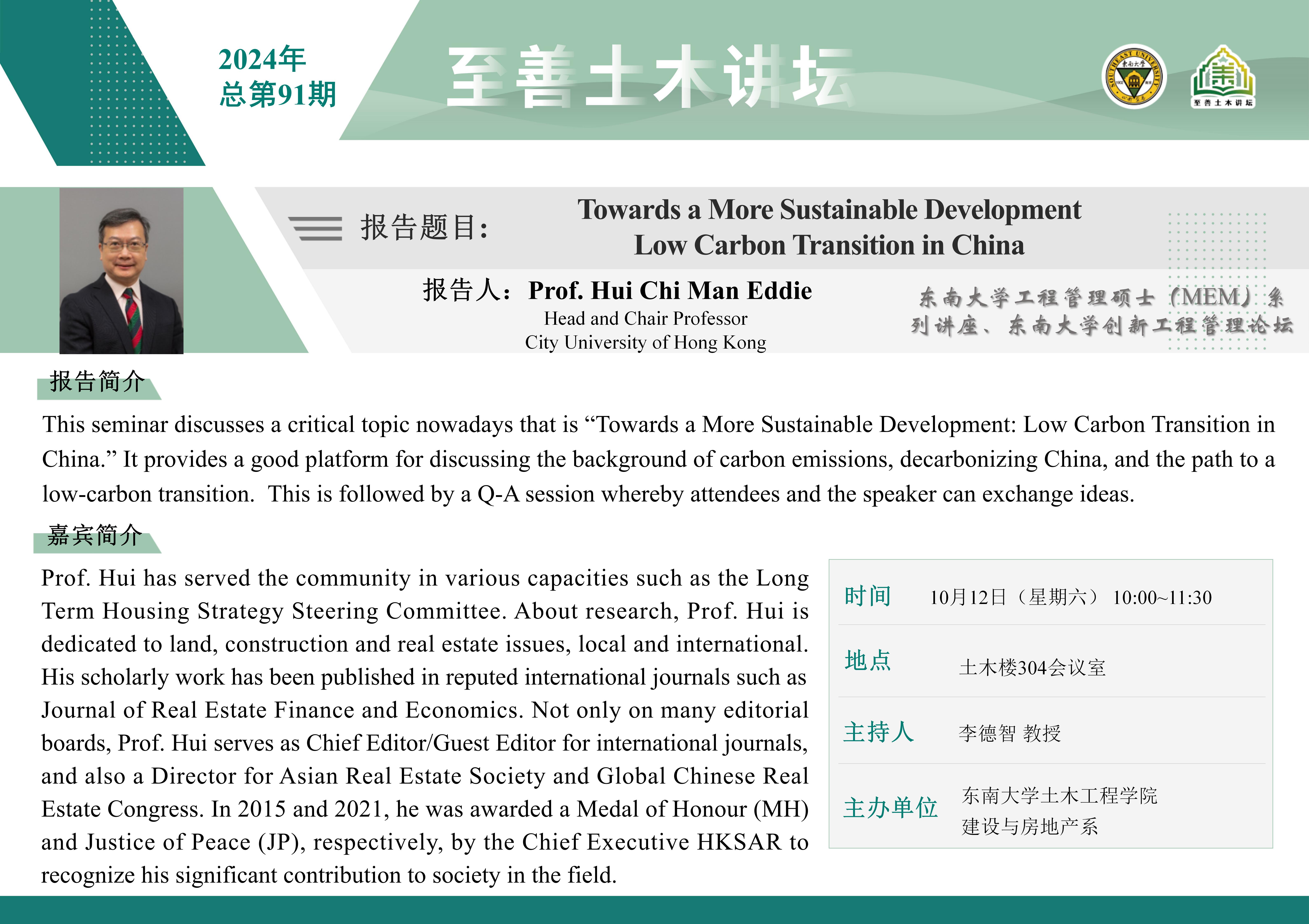 至善土木讲坛2024年总第91期 | Towards a More Sustainable Development Low Carbon Transition in China