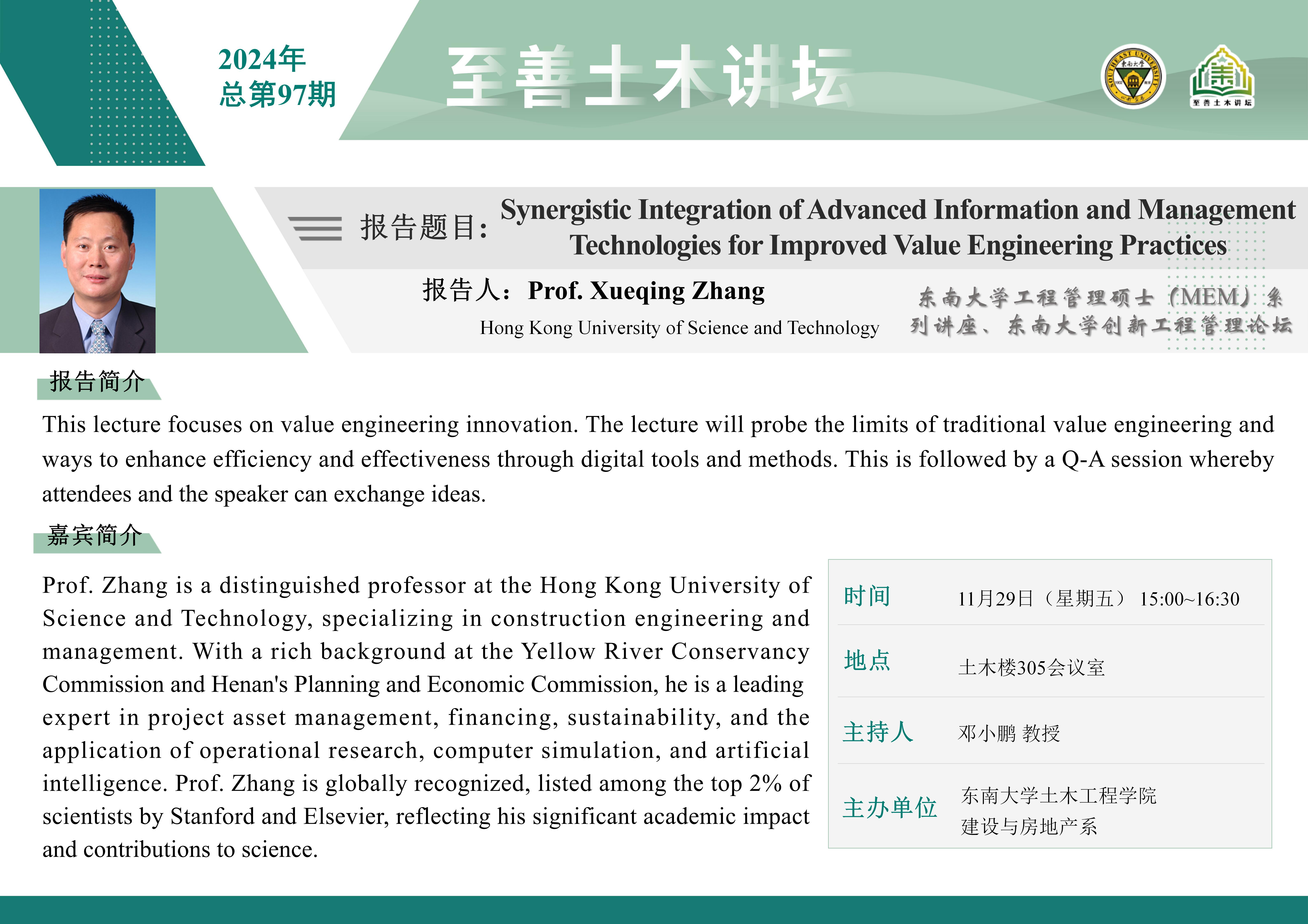 至善土木讲坛2024年总第97期 | From Mega Proiects to Sustainable Society: Generating Additional Societal Value